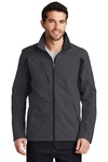 This sleek, tech-inspired soft shell resists wind and rain and features an undeniably on-trend colorblock look. 100% polyester woven shell bonded to a water-resistant film insert and a 100% polyester microfleece lining 1000MM fabric waterproof rating 1000G/M2 fabric breathability rating Zip-through cadet collar Welding detail at chest pocket Vislon center zipper Hidden front zippered pouch pockets Open cuffs and hem