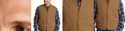 Rugged and ready to take on the toughest jobs, this warm, soft, layerable vest is enzyme-washed for a lived-in look and easy fit. The length allows tool-belt access, but is also ideal for everyday use. 12-ounce, 100% cotton enzyme-washed duck cloth 100% polyester taffeta lining quilted to 6-ounce, polyfill insulation Rib knit collar Metal rivets at crucial stress points Front hand warmer pockets Interior pocket with hook and loop closure Port Pocket ™ for easy embroidery access **