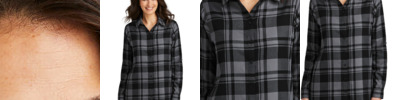 Our flannel shirt takes laid-back looks to the next level. Ultra soft and just the right weight, it makes a statement with a classic plaid pattern and casual comfort. 4.4-ounce, 60/40 cotton/poly flannel Lightly brushed for softness Longer tunic length Open collar Bias-cut back yoke Box back pleat Roll sleeves with button tabs Button-through sleeve plackets Adjustable cuffs Rounded hem