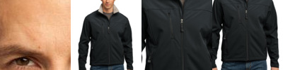 Our soft shell stands up to the elements and stands out with texture and bar tack details. Highly breathable and soft, this water resistant jacket is just right for the workday or the weekend. A hood and zippered sleeve vents add function and up-to-the-minute appeal.