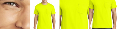 - 50/50 cotton/poly blend (Brite Lime, Brite Orange)