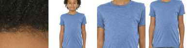 - Black Heather Triblend: 70/15/15 Airlume combed and ring spun cotton/poly/rayon