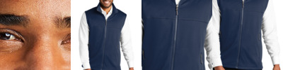 A smooth face, brushed back and coverstitching make this warm fleece vest a classier alternative to more casual fleece.