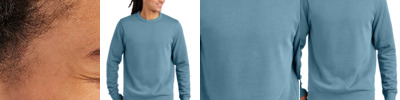 - 7.7-ounce, 81% recycled polyester/8% polyester/11% spandex interlock knit (heathers)